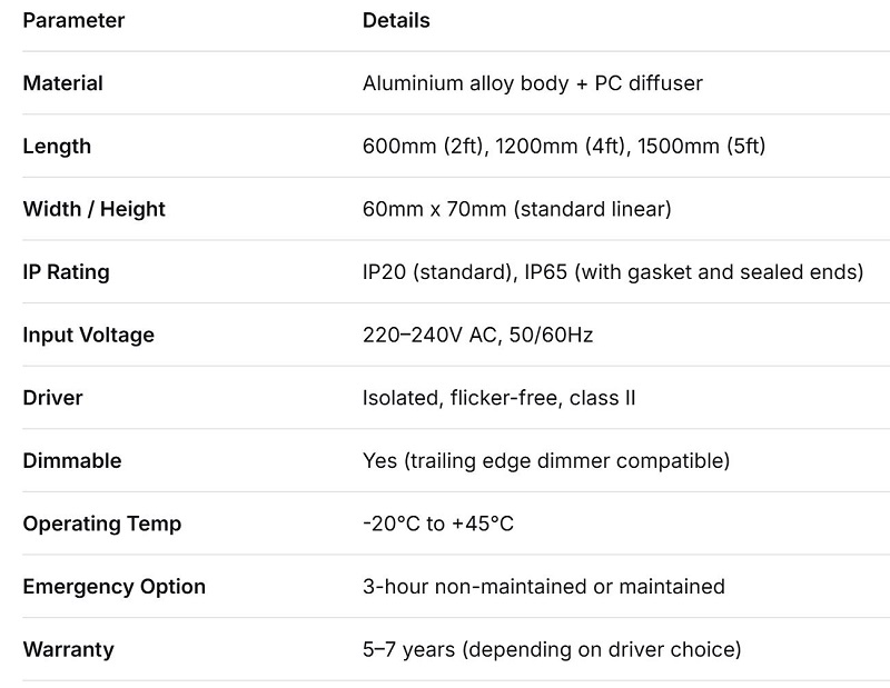 Матеріал: зазвичай екструдований алюміній для розсіювання тепла в поєднанні з полікарбонатним дифузором. Існують сталеві версії, але алюміній є золотим стандартом для збереження прохолоди світлодіодів.